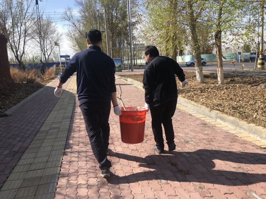 春回大地万物苏,植树添绿正当时。4月13日,公司组织全体员工至奎屯市托里街进行树木涂白活动。